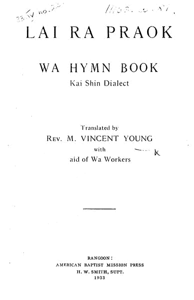 [2] Listen to a track from a CD of Wa hymns. The 2001 Fourth Revised Edition of the hymnal, meticulously edited by the great Wa educator Ai Pao Pleek Sgu (Moses), has been added to our corpus of Wa texts (words only).