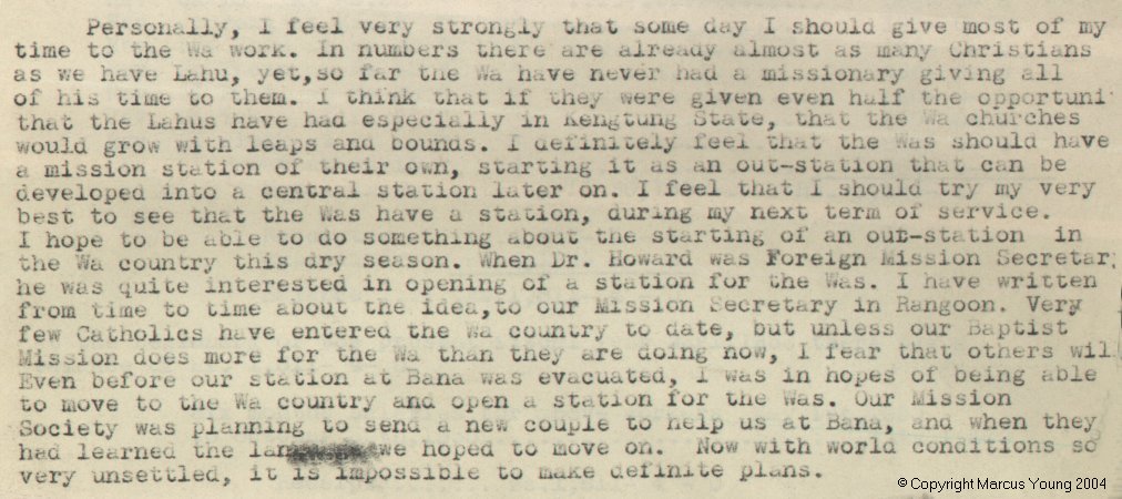 William Marcus Young (永伟里), an American[1] missionary from Nebraska, came to Burma in 1892, perhaps under the auspices of the Boston Missionary Society. He and his wife established a mission in the area of the town of Kengtung in the Shan state (northeastern Burma). The mission buildings which William Young built in 1936 still stand today near the gate in the northern Kengtung town wall. They form the background for the picture at lower left.