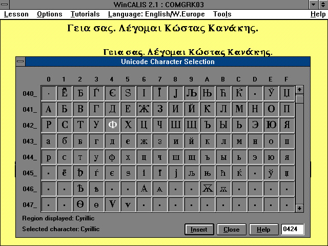A Unicode Browser in WinCALIS, WinCALIS Author, and UniEdit allows users to insert exotic characters in their text. But equally important, it allows them to get acquainted with the